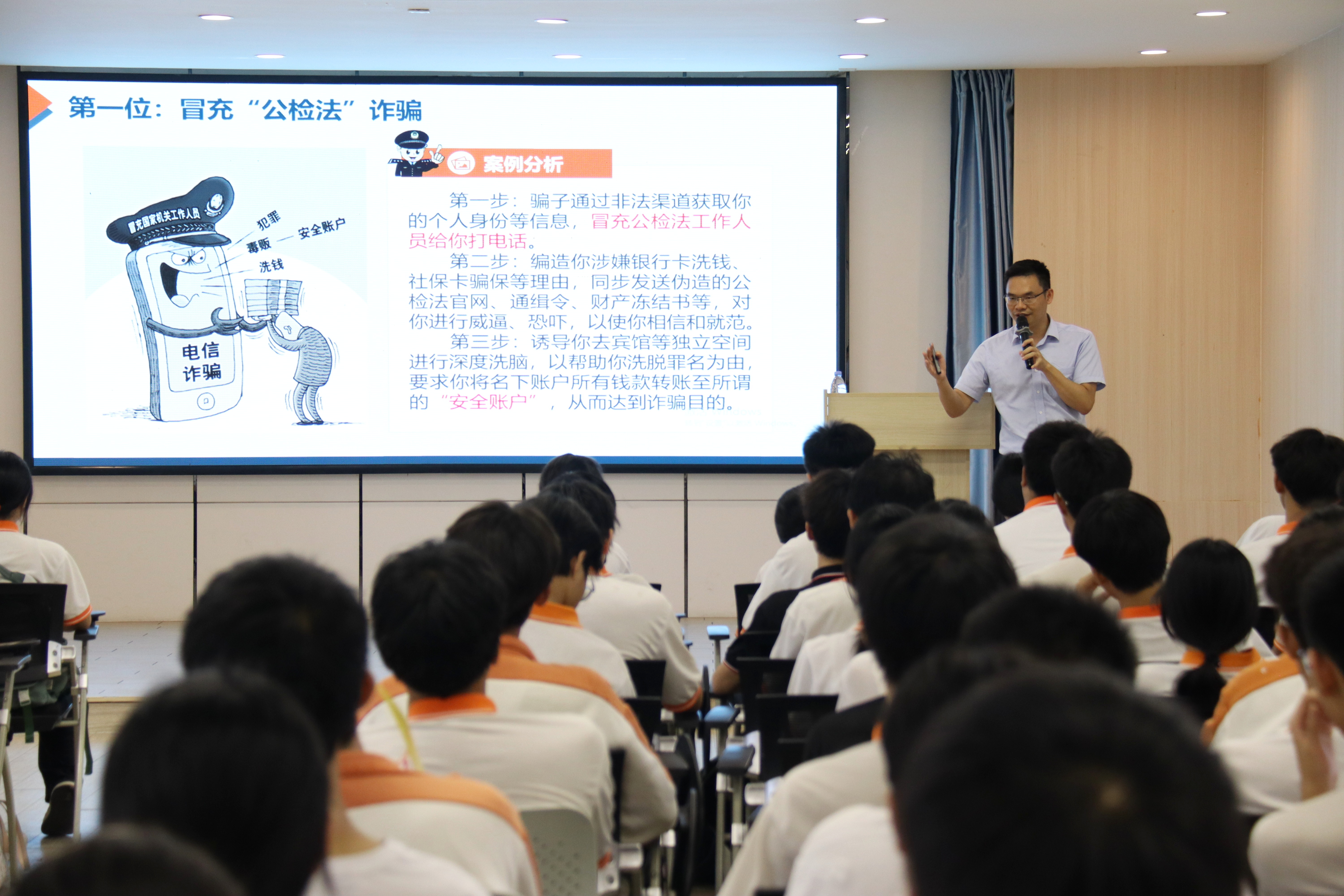 6月19日下午,中山市德成技工学校在多媒体功能室组织开展防范非法金融活动宣讲大会,24级全体学生参加宣讲大会。此次大会旨在通过系统性的电信反诈知识科普,帮助学生筑牢反诈思想防线,全面提升识骗防骗能力,有效增强风险防范意识。本次宣讲大会特别邀请中山农商银行火炬开发区支行冯胜行长作主讲。